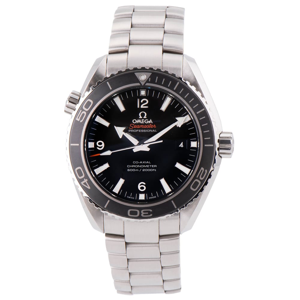 The Omega Seamaster Planet Ocean 600M Co-Axial is a remarkable timepiece designed for men who appreciate precision and style. Featuring a 45.50 mm stainless steel case with a matt black dial, it exudes sophistication and functionality. This automatic watch is powered by the Omega 8500 caliber and boasts an impressive 60-hour power reserve. With its ceramic bezel, sapphire crystal, and excellent used condition, this model is sure to elevate any watch collection.
