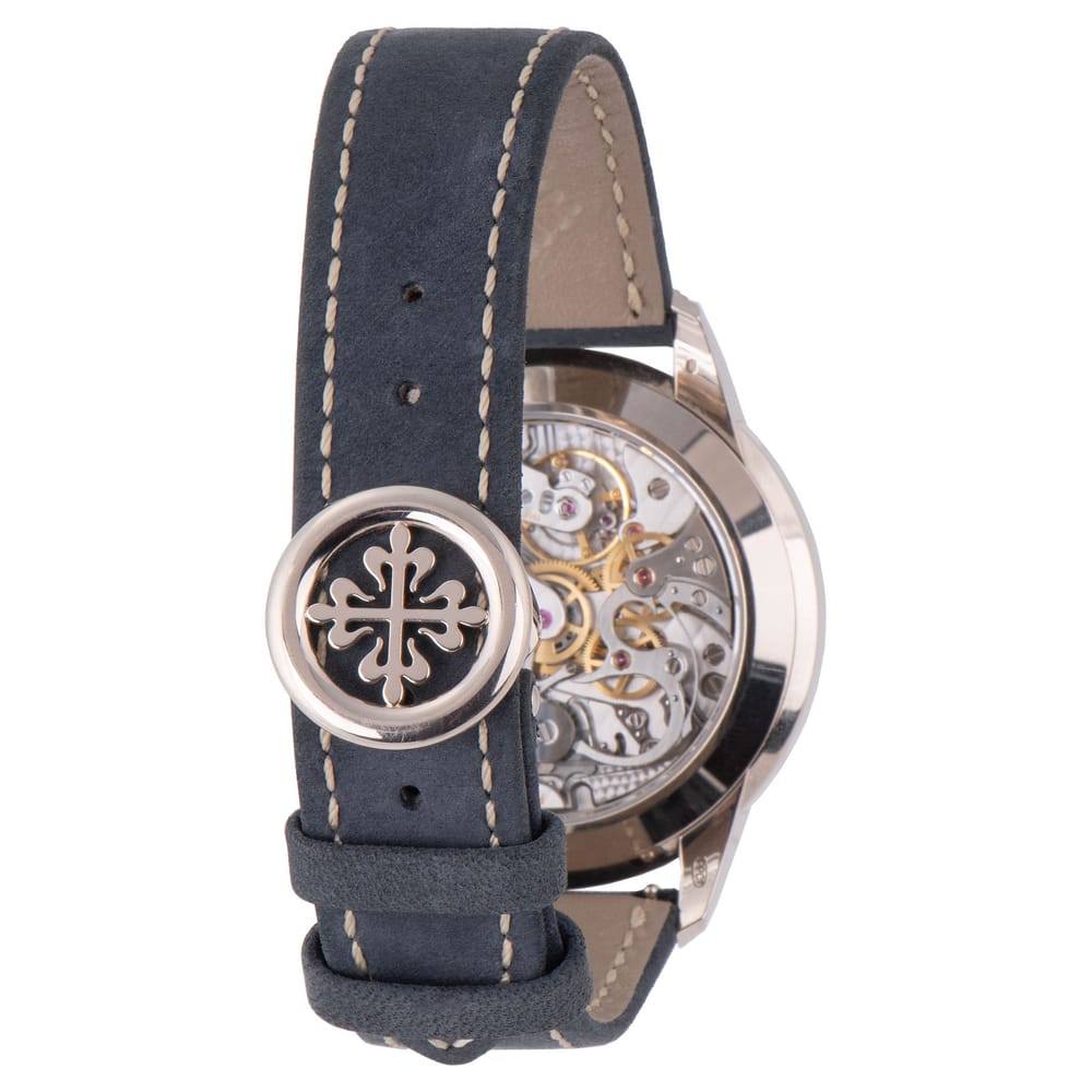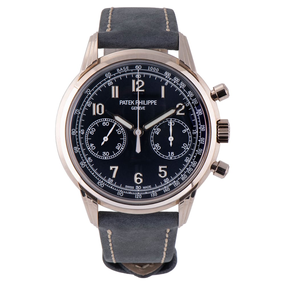 This exquisite Patek Philippe timepiece features a robust 41.00 mm case crafted from 18K white gold and is adorned with a fixed bezel. The striking blue varnished dial complements the elegant navy blue leather strap, making it a sophisticated choice for men. With its CH 29-535 PS caliber, this watch offers an impressive 65-hour power reserve and features a chronograph complication for enhanced functionality. This pre-owned piece is in excellent condition and comes with papers only, ensuring its authenticity and heritage.