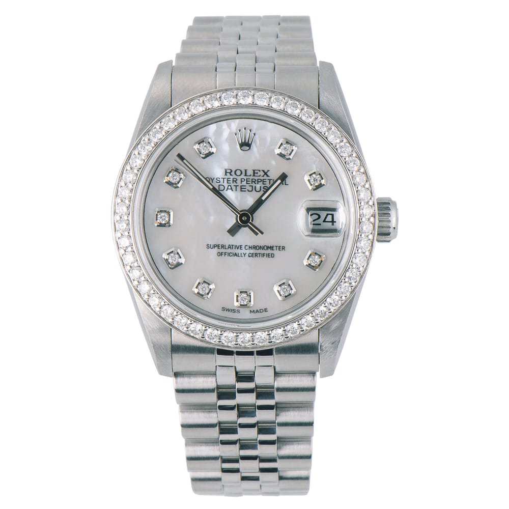 This exquisite Rolex Datejust 68274 features a polished stainless steel case and a luxurious diamond bezel that adds a touch of elegance. The pristine white dial is complemented by an automatic movement, boasting a 42-hour power reserve for reliable timekeeping. Crafted for men, this timepiece combines classic style with modern functionality, making it an essential accessory for any occasion. Please note, this watch is in excellent used condition and is sold without the original box or papers.