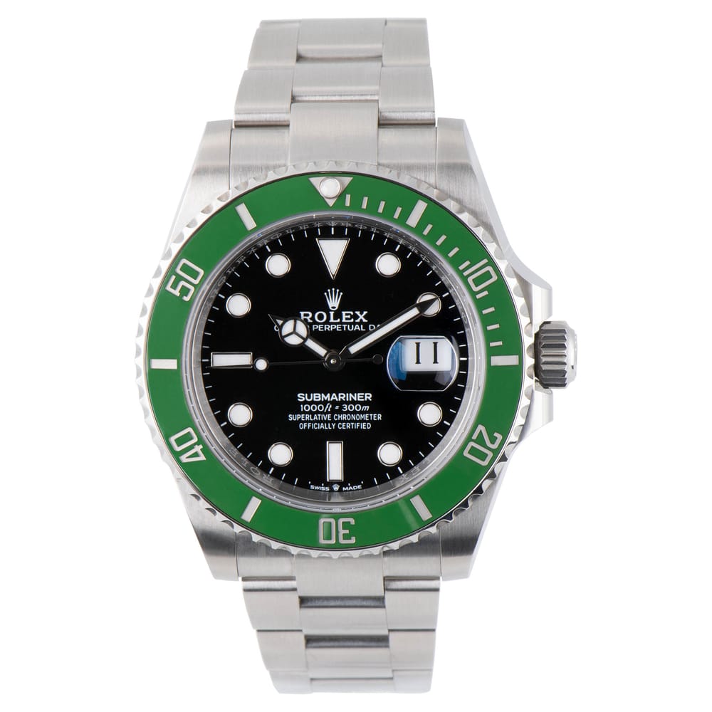The Rolex Submariner 126610LV is a remarkable timepiece with a robust stainless steel case measuring 40.00 mm. It features an exceptional 70-hour power reserve powered by the renowned Caliber 3235 movement. The striking black dial and graduated bezel complete its sophisticated look, making it suitable for both casual and formal occasions. This watch is classified as used (excellent condition) and includes papers only, ensuring its authenticity.