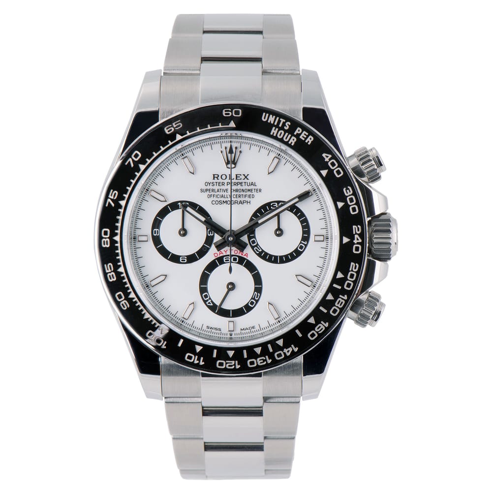 The Rolex Cosmograph Daytona 278240 is a remarkable timepiece, showcasing a polished stainless steel case measuring 40.00 mm. This exquisite watch features a fixed Cerachrom bezel and a pristine white dial, ensuring elegance with every glance. It’s powered by the robust 4131 automatic movement, boasting a 72-hour power reserve and a date complication for added functionality. In excellent used condition, this dress watch is perfect for the modern man seeking both style and performance.