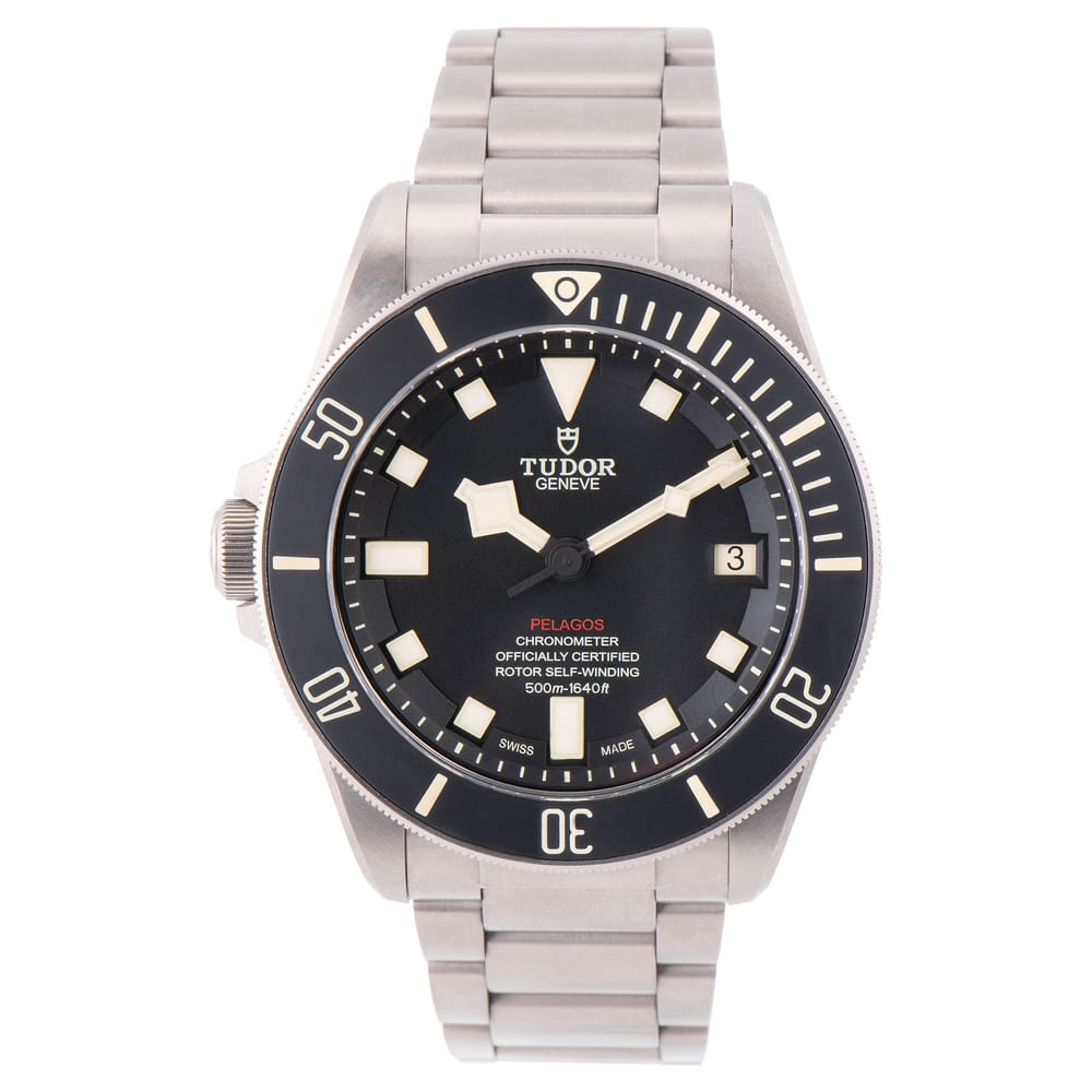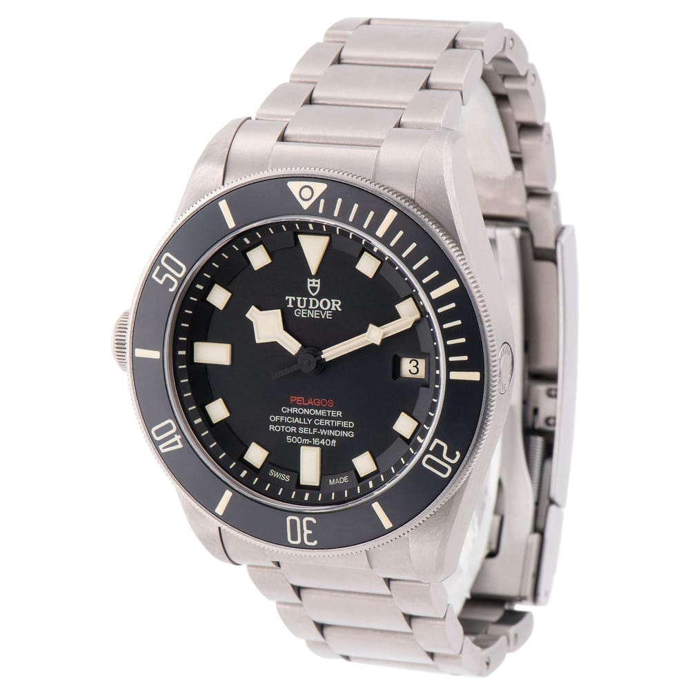 The Tudor Pelagos LHD is an exceptional automatic dive watch designed for men, featuring a robust titanium case in a matte grey finish. With a chronograph style and a striking matte black dial, this timepiece is both functional and stylish. It boasts a 70-hour power reserve and the reliable MT5612-LHD caliber, ensuring precision in every dive. This model is in excellent used condition and comes with papers only, making it a perfect addition for discerning watch collectors.